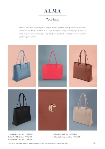 The “Alma” bags are made of vegan leather (PU) and are delivered in a non-woven bag. 65