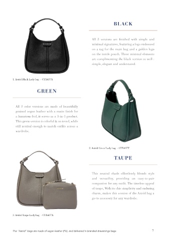 The “Astrid” bags are made of vegan leather (PU), and delivered in branded drawstrings bags. 7