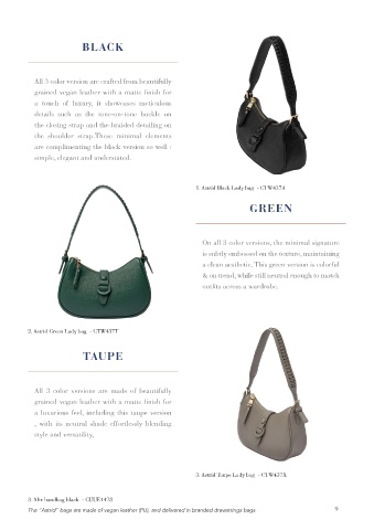 The “Astrid” bags are made of vegan leather (PU), and delivered in branded drawstrings bags. 9