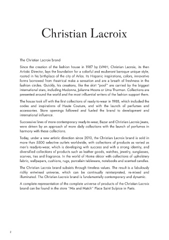 illuminated. The Christian Lacroix brand is fundamentally contemporary and dynamic.