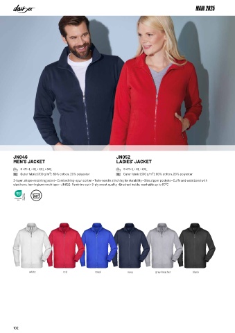 elasthane, herringbone neck tape • JN052: Feminine cut • 3-ply sweat quality • Brushed inside, washable up to 60°C