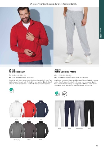 bands on neckline, sleeves and waistband • Flatlock seams, necktape band at the bottom of the legs • 2 side pockets • 3-thread sweat fabric •