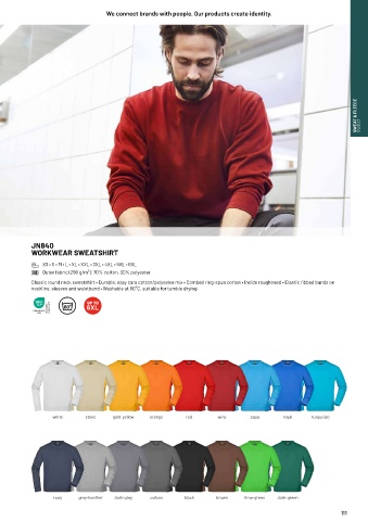 Classic round neck sweatshirt • Durable, easy care cotton/polyester mix • Combed ring-spun cotton • Inside roughened • Elastic ribbed bands on