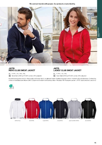 stripes on waistband and sleeve cuffs • 2-layer hood inside in contrasting colour • Metal zip YKK • Kangaroo pocket • JN775: lightly waisted, casual cut