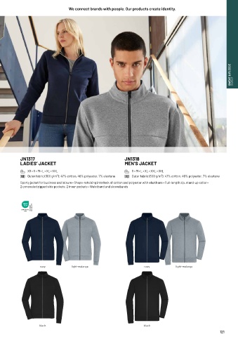 Sporty jacket for business and leisure • Shape-retaining interlock of cotton and polyester with elasthane • Full-length zip, stand-up collar •