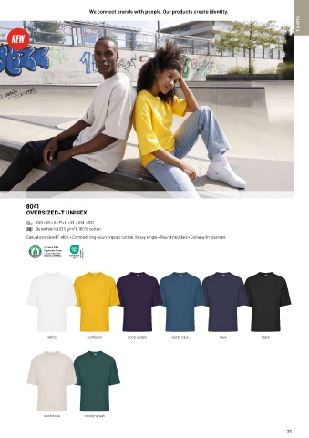 Casual oversized T-shirt • Combed, ring-spun organic cotton, heavy single • Round neckline • Collar with elastane