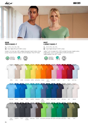 Classic T-shirt for men • 100% combed ring-spun organic cotton, single Ladies’ T-shirt in classic form • 100% combed ring-spun organic cotton,