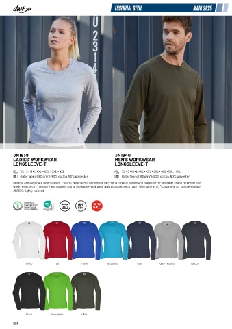 Durable and easy care long-sleeved T-shirt • Material mix of combed ring-spun organic cotton and polyester for optimum shape retention and