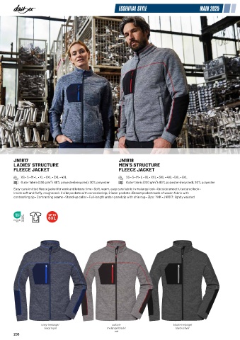 contrasting zip • Contrasting seams • Stand-up collar • Full-length under-panel zip with chin cup • Zips: YKK • JN1817: lightly waisted