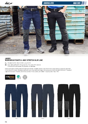 Modern work pants in slim profile with functional details • Durable, elastic 4-way stretch with a high elastane content for optimum