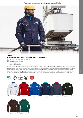 and permeable to water vapour (2,000 g/m²/24h) • Stand-up collar on the inside with soft fleece • Ergonomically shaped sleeves, extended back •