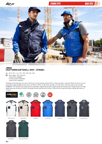 Professional softshell vest with warm inner lining • Sturdy, durable softshell fabric • Wind-and water-repellent (2,000 mm water column) •