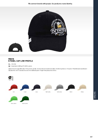 Classic 6 panel cap with close-fitting front panels • 6 embroidered ventilation holes • 6 stitching lines on the peak • Padded satin sweatband •