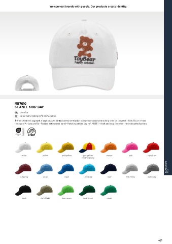 the age of 4 • Low profile • Padded satin sweat band • Matching adults’ cap ref. MB6111 • Hook and loop fastener • Heavy brushed cotton