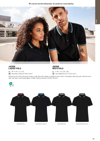 tone, neck tape in contrasting colour • JN1305: 5 buttons, waisted • JN1306: 3 buttons