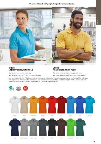 Knitted polo collar and sleeve cuffs • Neck tape • Loose collar patch for easy labelling • JN829: button placket with 4 buttons, side slits •
