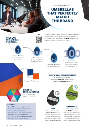 • Customised advertising umbrellas offer you rPET Water-saving coloured