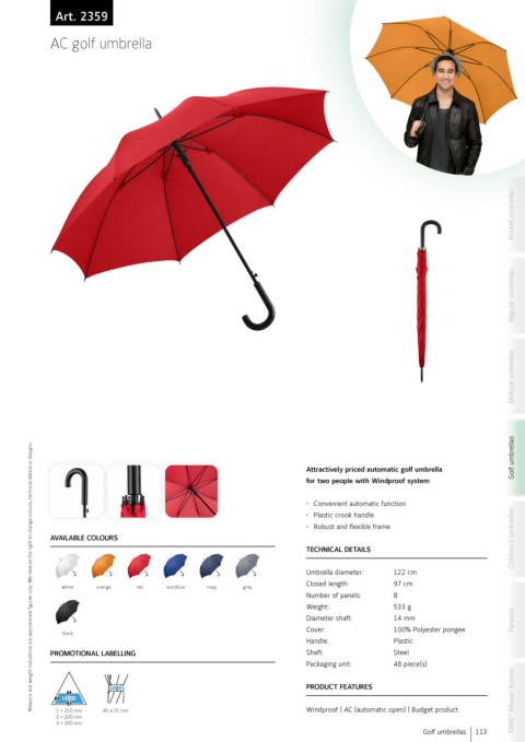 1 = 210 mm 85 x 15 mm Windproof | AC (automatic open) | Budget product