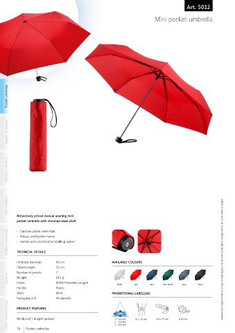 Umbrella diameter: 90 cm AVAILABLE COLOURS Measure and weight indications are approximate figures only. We reserve the right to change colours, technical details or designs.