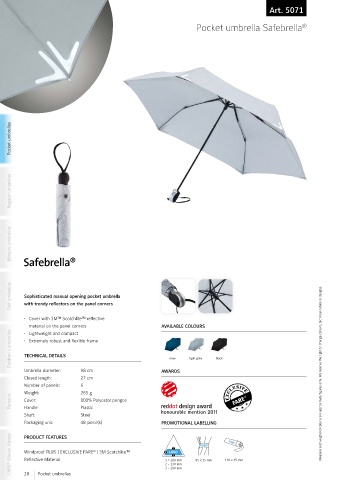 Umbrella diameter: 98 cm AWARDS Measure and weight indications are approximate figures only. We reserve the right to change colours, technical details or designs.