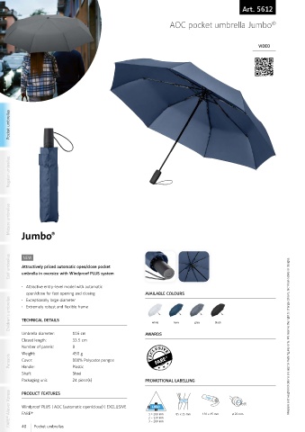 Umbrella diameter: 116 cm AWARDS Measure and weight indications are approximate figures only. We reserve the right to change colours, technical details or designs.