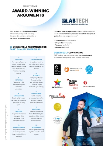 FARE umbrellas fulfil the highest standards The LABTECH testing organisation (DAkkS-accredited laboratory)