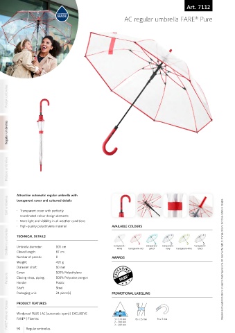 Children´s umbrellas TECHNICAL DETAILS 105 cm transparent- transparent-red transparent- transparent- transparent-lime transparent-