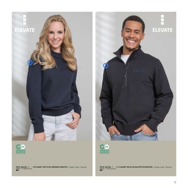 55 55 37543 2XS-3XL | JET AWARE™ RECYCLED CREWNECK SWEATER | Organic cotton - Recycled 37546 2XS-3XL | TIN AWARE™ RECYCLED QUARTER ZIP SWEATER | Organic cotton - Recycled cotton | 3.362 kg CO2 e cotton | 3.407 kg CO2 e 13