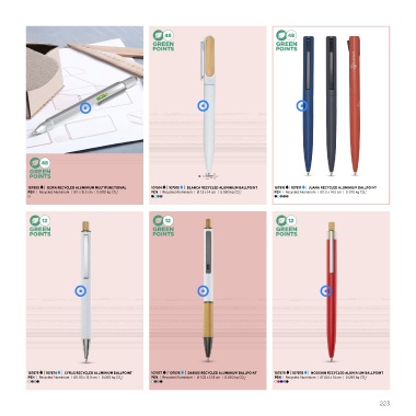 107908 | DORA RECYCLED ALUMINIUM MULTIFUNCTIONAL 107914 | 107915 | BLANCA RECYCLED ALUMINIUM BALLPOINT 107916 | 107917 | JUANA RECYCLED ALUMINIUM BALLPOINT