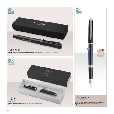 107760 | PARKER IM FOUNTAIN PEN | Brass | Ø 1.3 x 13.8 cm | 0.140 kg CO e PALLADIUM TRIM | Metal | Ø 1.1 x 13.7 cm | 0.090 kg CO 2 e