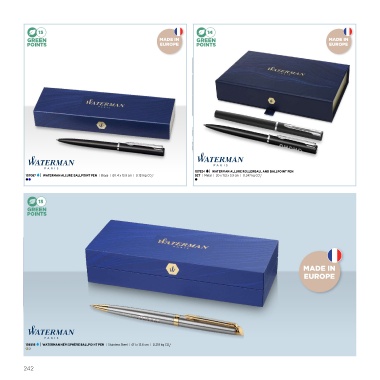 107087 | WATERMAN ALLURE BALLPOINT PEN | Brass | Ø 1.4 x 13.9 cm | 0.151 kg CO e SET | Metal | 20 x 11.2 x 3.9 cm | 0.247 kg CO e