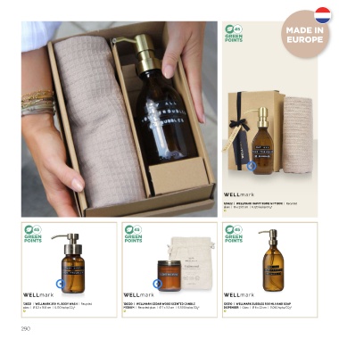 126321 | WELLMARK 250 ML BODY WASH | Recycled 126320 | WELLMARK CEDAR WOOD SCENTED CANDLE 126310 | WELLMARK BUBBLES 500 ML HAND SOAP
