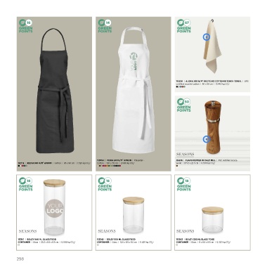 112053 | VIERA 240 G/M² APRON | Polyester - 113378 | FLAVO PEPPER OR SALT MILL | FSC certified acacia