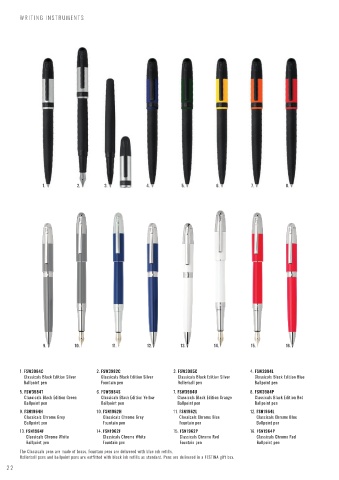 Rollerball pens and ballpoint pens are outfitted with black ink refills as standard. Pens are delivered in a FESTINA gift box.