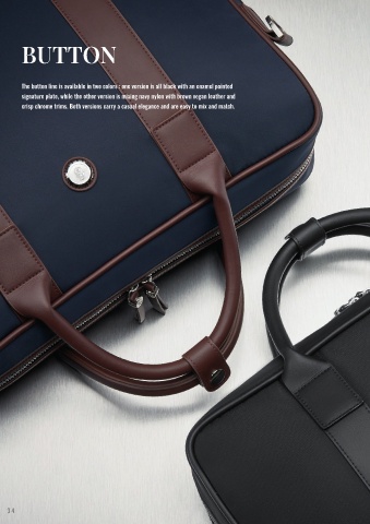 signature plate, while the other version is mixing navy nylon with brown vegan leather and