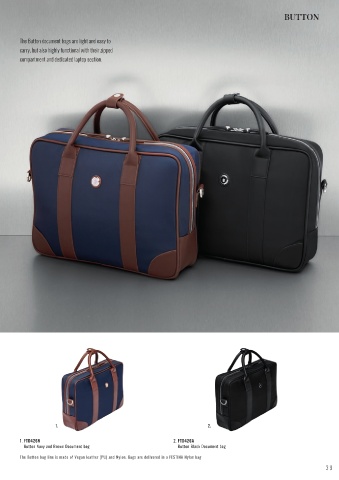 The Button bag line is made of Vegan leather (PU) and Nylon. Bags are delivered in a FESTINA Nylon bag