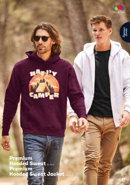 Premium Sweats Premium Zip Neck Sweat 62-032-0 Premium Sweat Jacket 62-228-0 Premium We made them soft, but Hooded Sweat 62-152-0 they’re hard-wearing too. Premium Hooded Sweat Jacket 62-034-0 46 47
