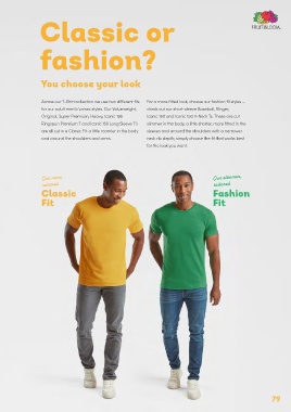 unisex styles (classic and fashion fit, see opposite), and while our kids’ Across our T-Shirt collection we use two different fits For a more fitted look, choose our fashion fit styles –