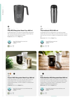 recycled stainless steel. The transparent plastic push-on lid has a PP inner wall. The cup has a black transparent push-on lid with a sealable