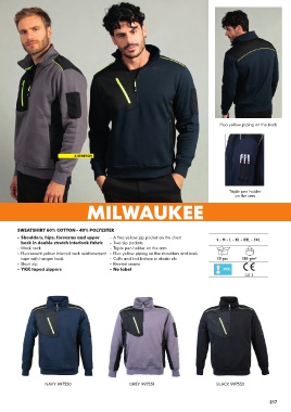 - Shoulders, hips, forearms and upper - A fluo yellow zip pocket on the chest