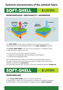 The 3-layer SOFT-SHELL is the result of the combination of 3 different fabrics