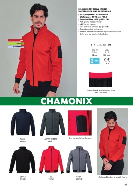 - Cuffs and bottom in stretch fabric