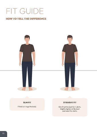 FIT GUIDE HOW TO TELL THE DIFFERENCE SLIM FIT STRAIGHT FIT Fitted cut hugs the body lim t at the bust for t-shirts lightly tighter at the bust and waist for shirts 10.