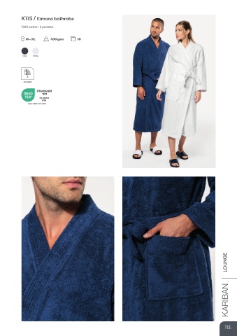 K115 / Kimono bathrobe 100% cotton. 2 pockets. M - XL 400 gsm 10 Navy White 2 LOUNGE 113.
