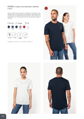 100% combed cotton. Jersey fabric. Straight fit. Cut and sewn. Crew