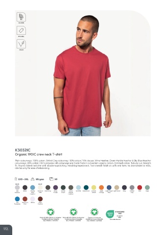colourways : 80% cotton / 20 % polyester. All colourways are made from in conversion organic cotton. Combed cotton. Tubular cut. Straight