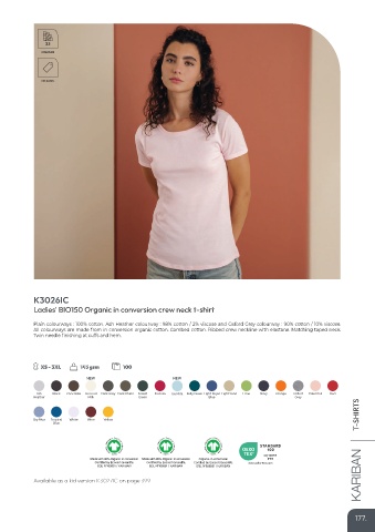 All colourways are made from in conversion organic cotton. Combed cotton. Ribbed crew neckline with elastane. Matching taped neck.