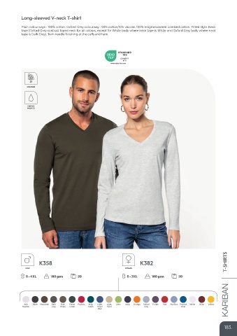Plain colourways : 100% cotton. Oxford Grey colourway : 90% cotton/10% viscose. 100% enzymewashed combed cotton. Fitted style. Neck