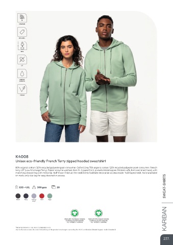 80% organic cotton / 20% recycled polyester post-consumer. Oxford Grey 75% organic cotton / 25% recycled polyester post-consumer. French