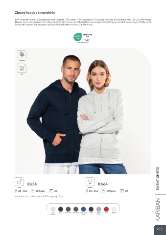 lining with drawstring. Kangaroo pockets. Ribbed cuffs and hem. Zip fastening. .